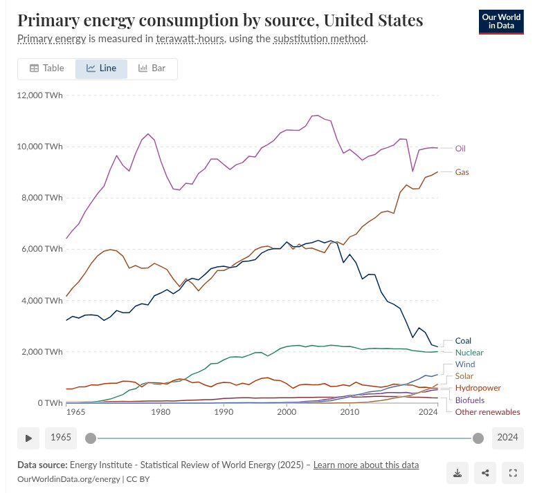 When you look at the global energy consumption chart, everything is growing. Renewables are growing too, but slower than the global appetite for energy. Coal and gas still dominate. The business hasn’t changed—only the address has moved.